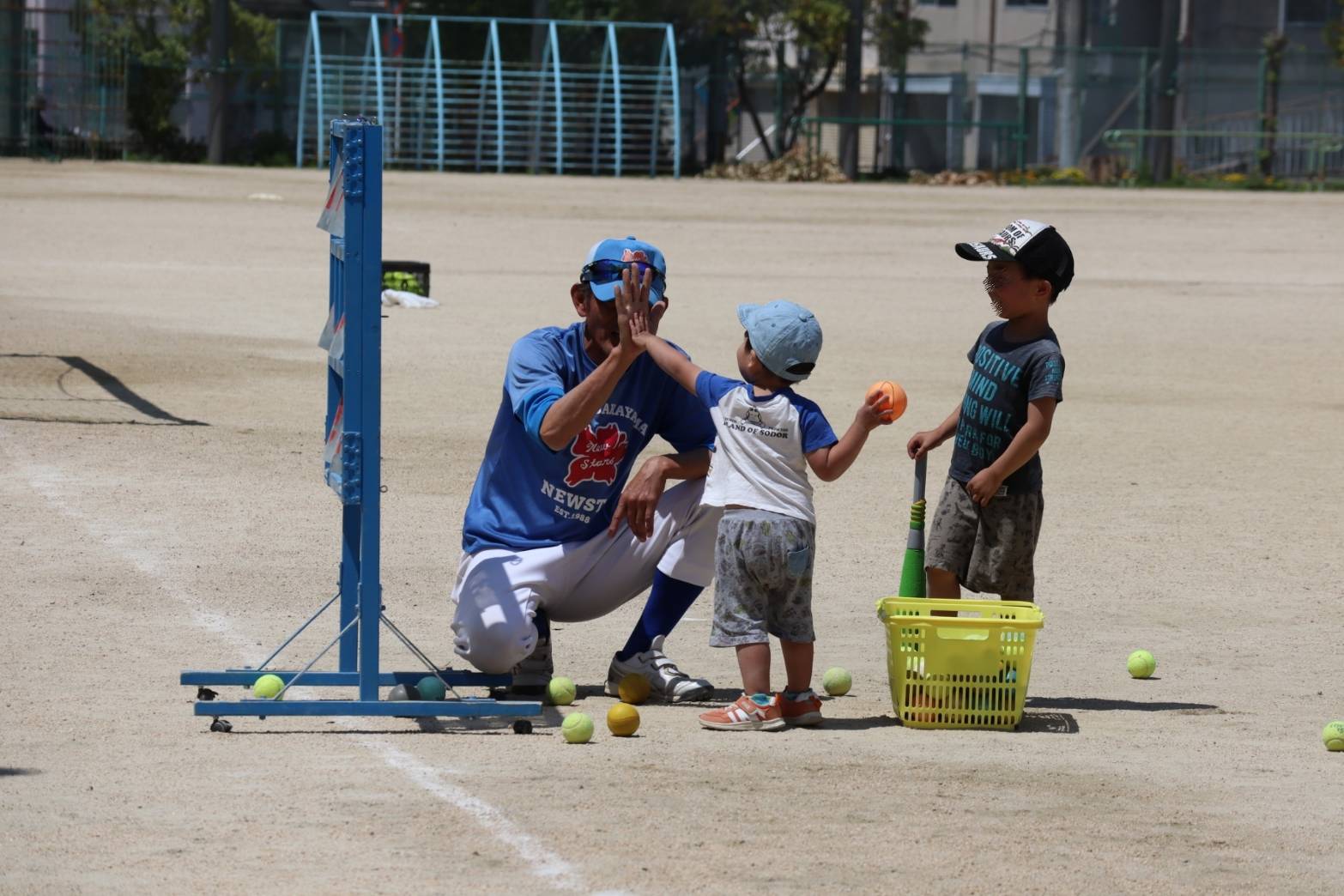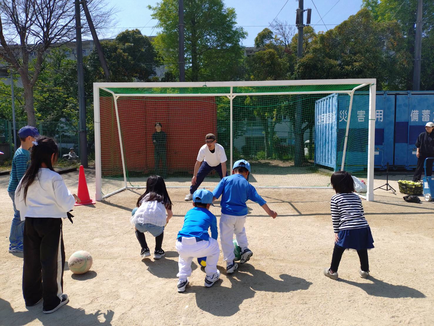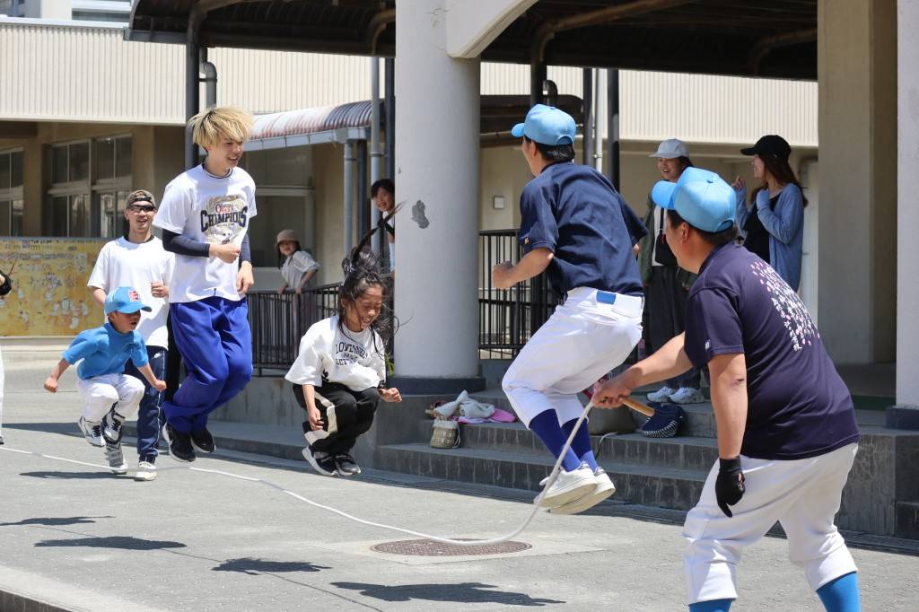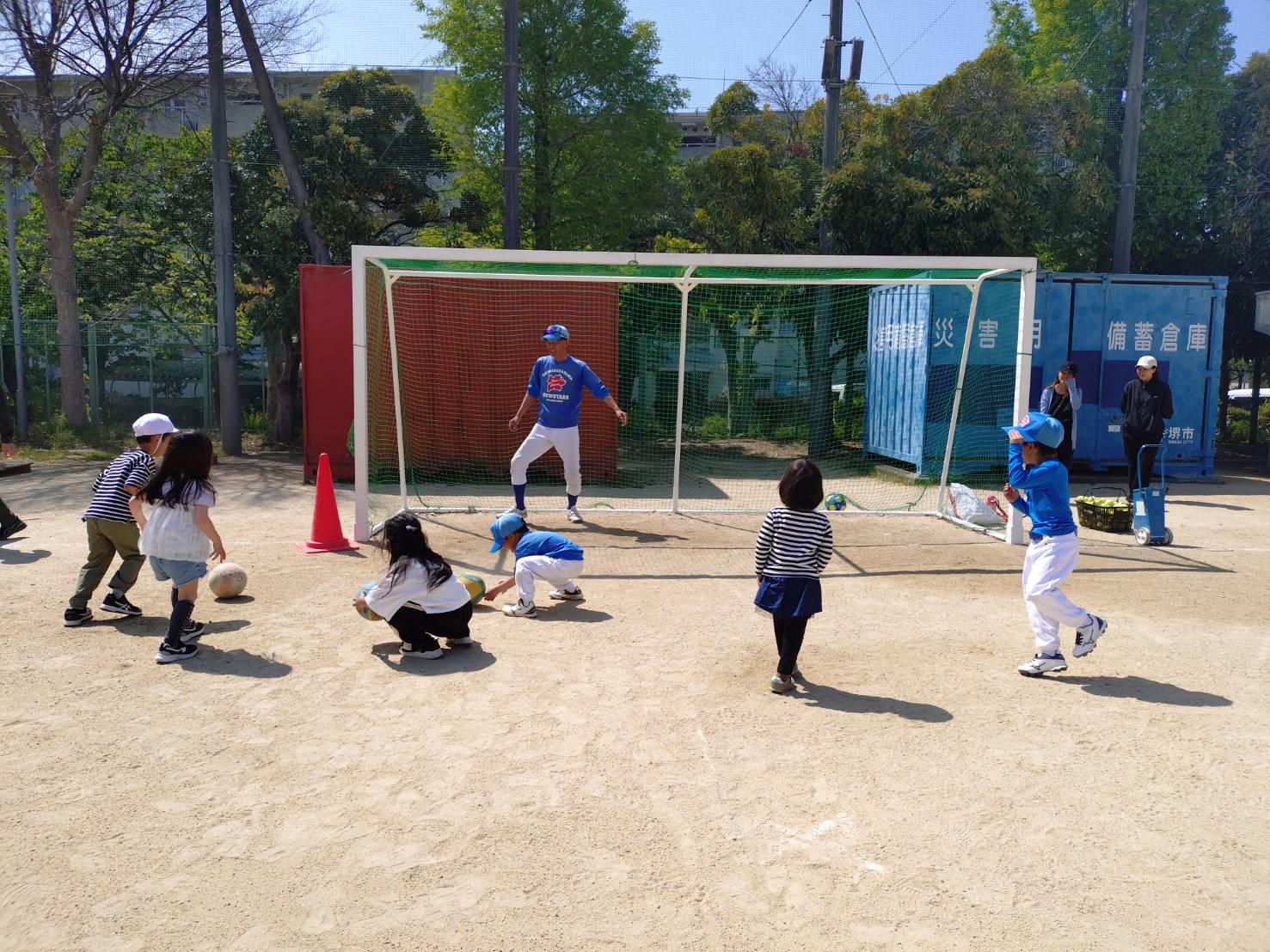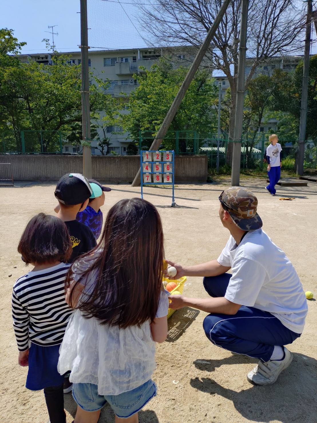 ストラックアウト、置きティ、トスマシン、サッカー、大縄跳びなど色々な遊び道具を用意し